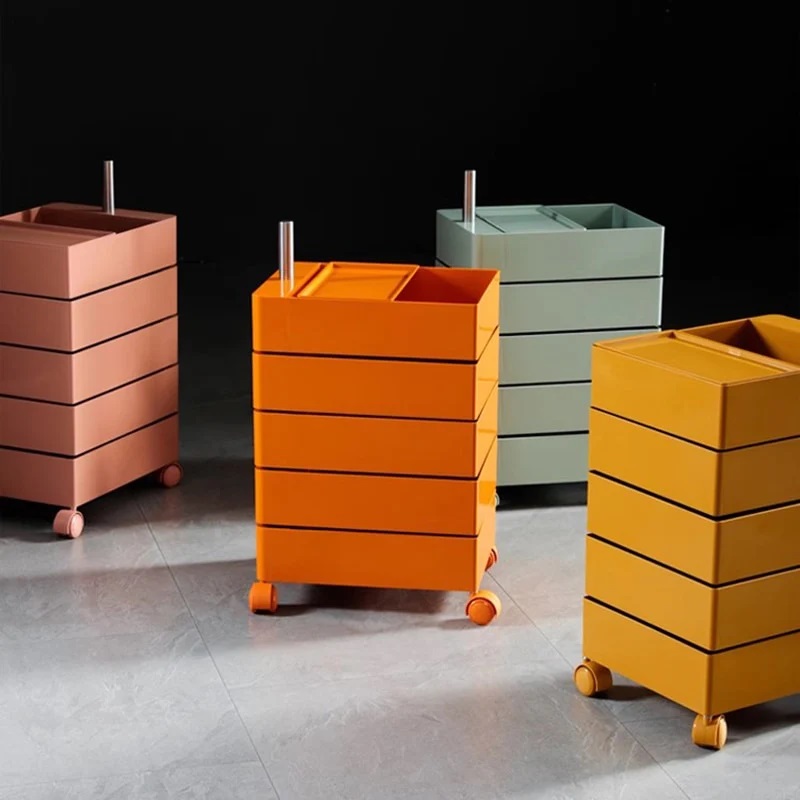 Extremely functional 360? Swivel Trolley is a compact and fun storage unit that is sure to add a touch of the 70s to your home. Available in five popping colours, this storage unit has 5 layers that twist open to reveal a surprising amount of space. The piece has wheels to allow for easy movement around the room. Slide the drawers open to show off what's inside and click the drawers back into place when you want to hide your mess! Each draw has a height of 10cm. Material