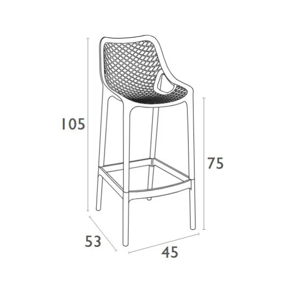 Air Bar Stool h.75 cm is produced with a single injection of polypropylene reinforced with glass fiber obtained by means of the latest generation of air moulding technology with neutral tones. For indoor and outdoor use.