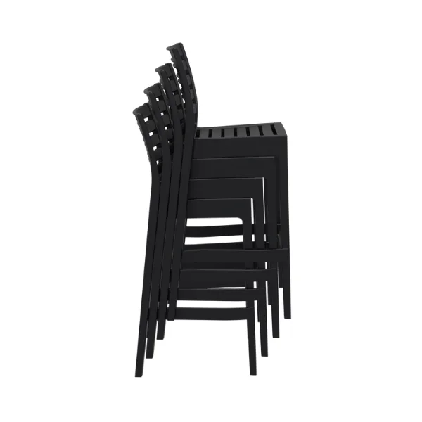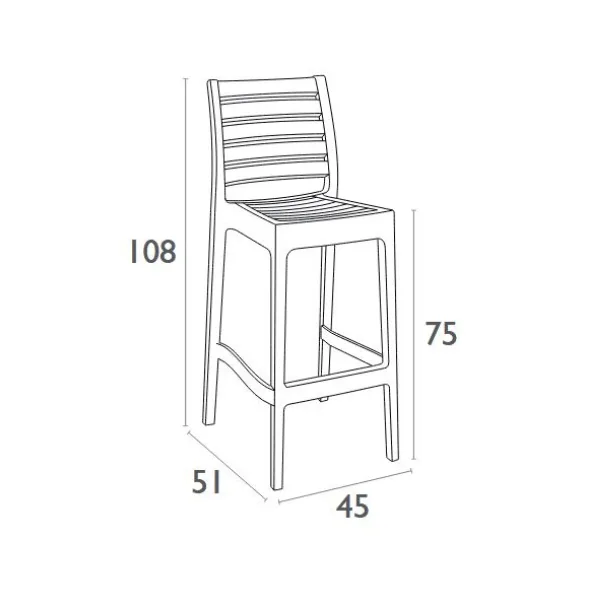 Ares stacking bar stool h.75 cm is produced with a single injection of polypropylene reinforced with glass fiber obtained by means of the latest generation of air moulding technology with neutral tones. For indoor and outdoor use.