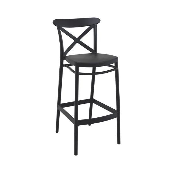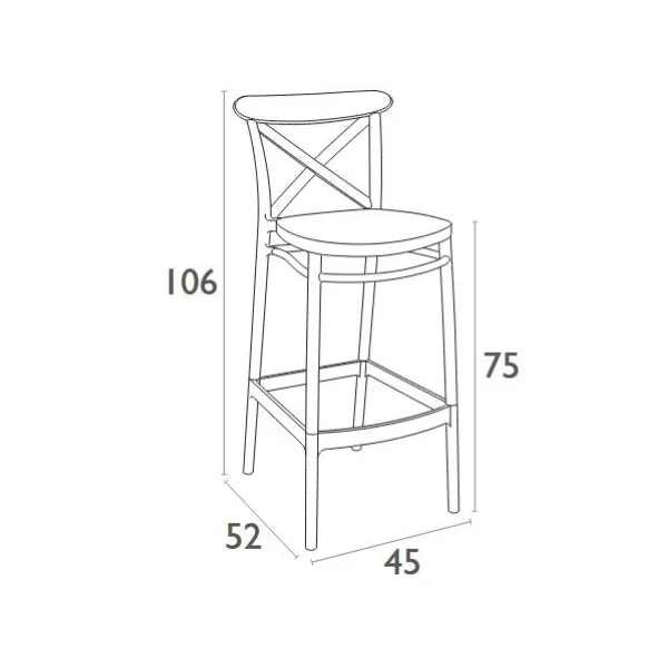 Cross bar stool h.75 cm is produced with a single injection of polypropylene reinforced with glass fiber obtained by means of the latest generation of air moulding technology with neutral tones. For indoor and outdoor use.
