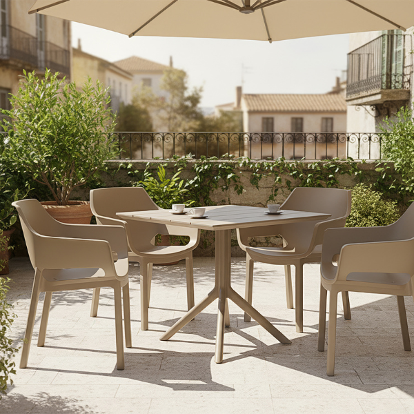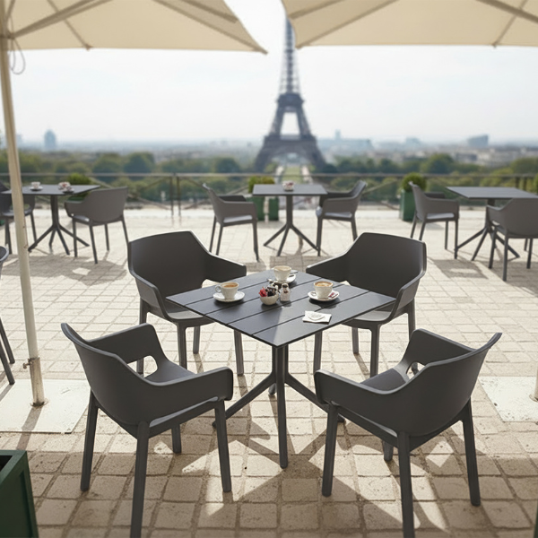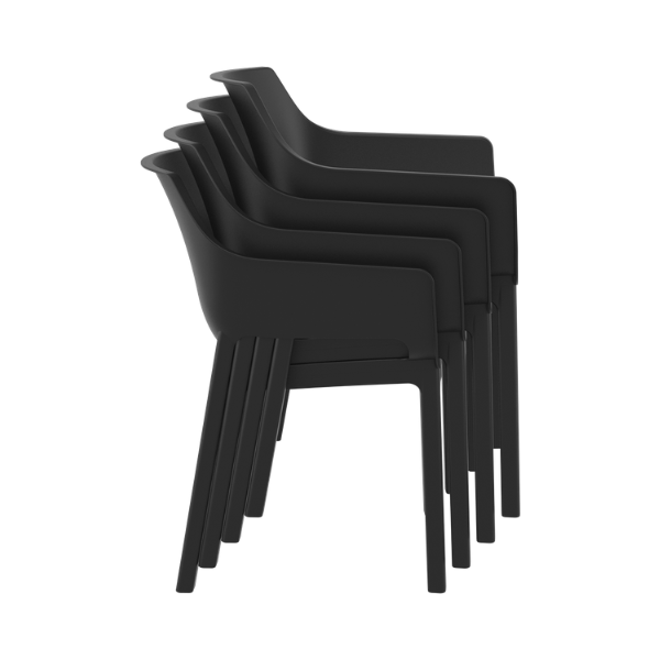 Dora armchair reinforced with glass fiber features refinement and a design carefully prepared down to the smallest detail. Practical and functional, it has non-skid rubber caps, tubular legs and is stackable. For indoor and outdoor use.