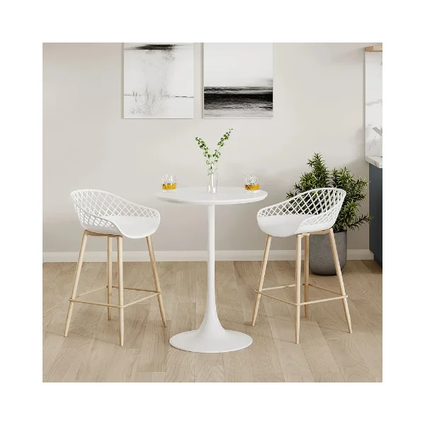 Its gently curved seat and wraparound back give just the right amount of ergonomic support. The durable steel frame construction is impressively lightweight. Whether you’re sipping morning coffee or entertaining guests, this counter-height stool adds a contemporary touch that blends into any indoor or outdoor space with ease.