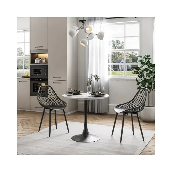 Indoors, it livens up the dining table but is also perfect as an entry chair or desk chair. It’s as versatile as a chair can be. The combination of the airy design with durable steel legs complements just about any space. The variety of colours adds a touch of whimsy that you’ll appreciate. The contoured shape is ergonomically designed for comfort. Smooth surfaces are weatherproof and easy to clean.