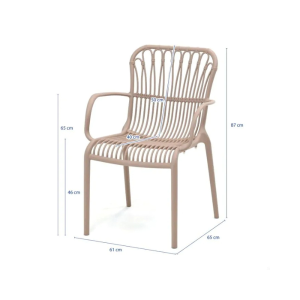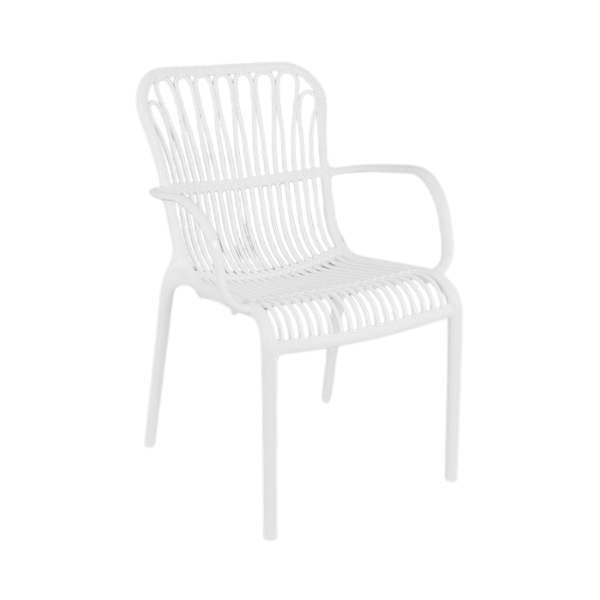 LOLA TERRACE CHAIR With its airy design, the Lola Terrace Chair is a real eye-catcher. The seat with armrest is very comfortable and the colour creates a fresh look on the terrace. The Lola Terrace Chair is stackable, making it easy to store! UV treated