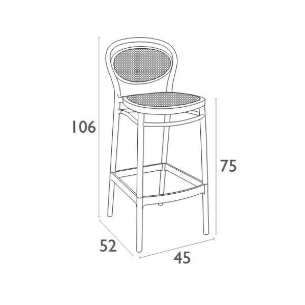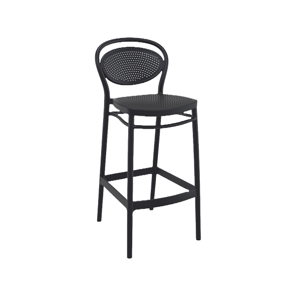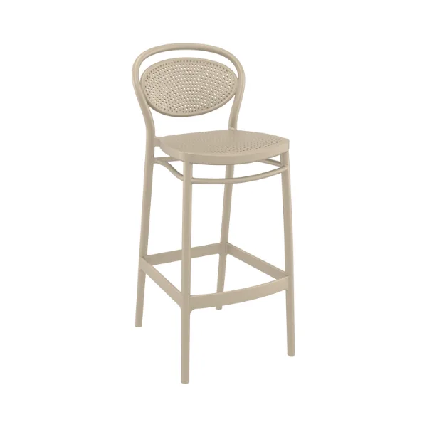 Marcel bar stool h.75 cm is produced with a single injection of polypropylene reinforced with glass fiber obtained by means of the latest generation of air moulding technology with neutral tones. For indoor and outdoor use.
