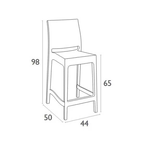 Maya stacking bar stool h.65 cm is produced with a single injection of polypropylene reinforced with glass fiber obtained by means of the latest generation of air moulding technology with neutral tones. For indoor and outdoor use.