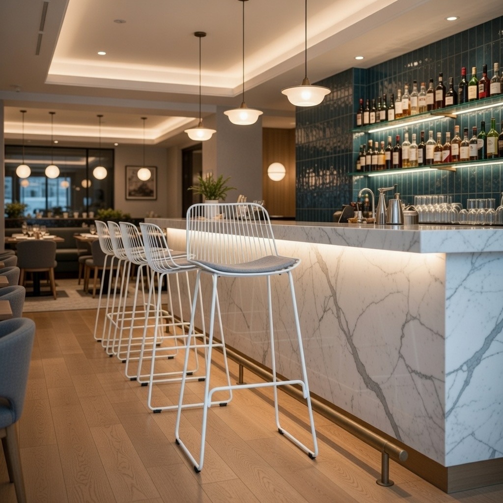 Enhance the style and functionality of your kitchen with the Nova Kitchen Stool. Designed with elegance in mind, these stools are the perfect addition to any space. The metal frame provides durability and stability, while the polyurethane padded seat offers exceptional comfort.  The seat cushion adds an extra layer of comfort, making these stools ideal for long hours of sitting.