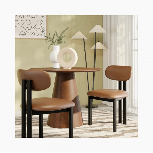 The Rory Dining Chair mixes strong functional design with Luxe 70s Revival. Crafted from soft latte fabric and a sleek black metal frame, these contrasting materials give retro-sque style. Match your Rory chairs perfectly with dark wood dining tables and abstract curved accessories for that completed 70s luxe vibe. For a rich depth of colour and unique softness.