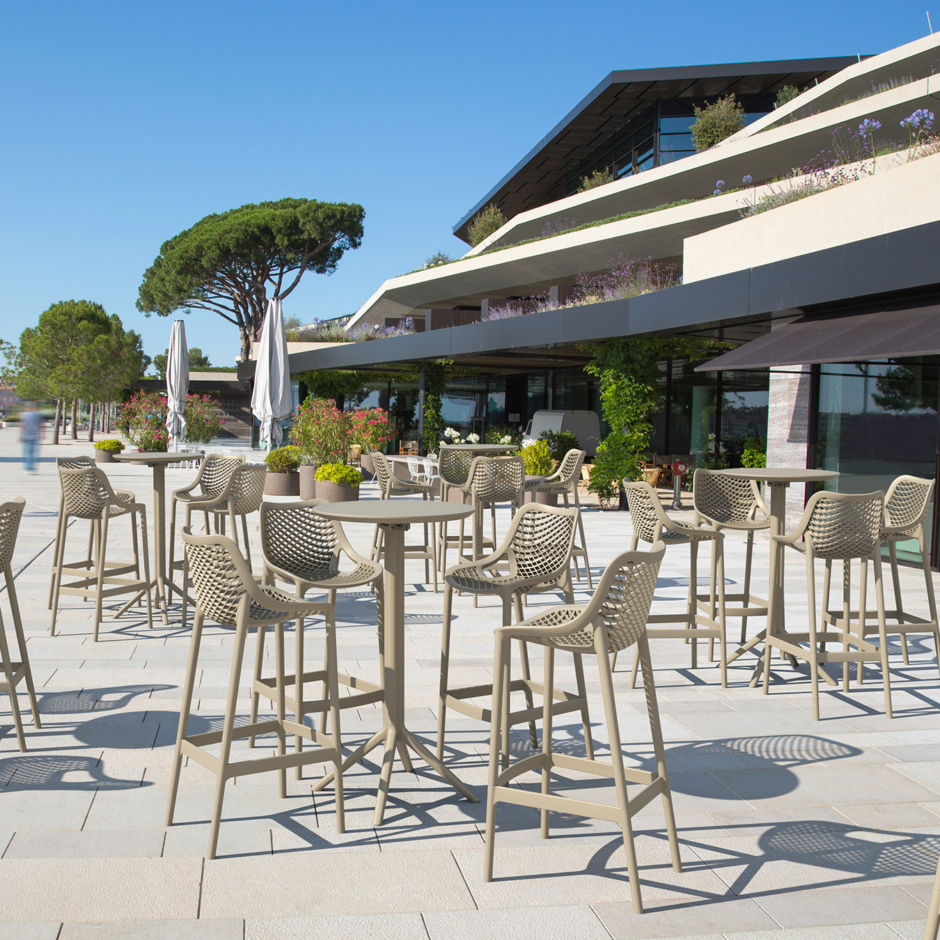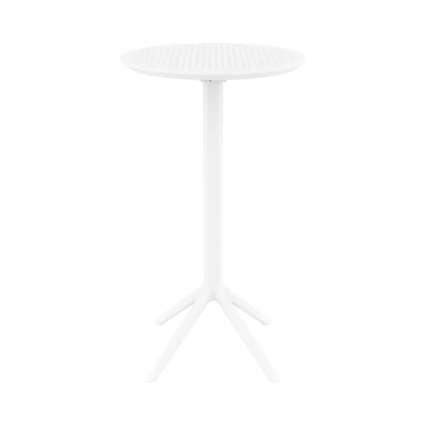 Sky folding bar table is made of durable weather-resistant resin. Metallic frame will never unravel, rust or decay. It is UV protected which insures the colors will not fade. Can be disassembled. For indoor and outdoor use