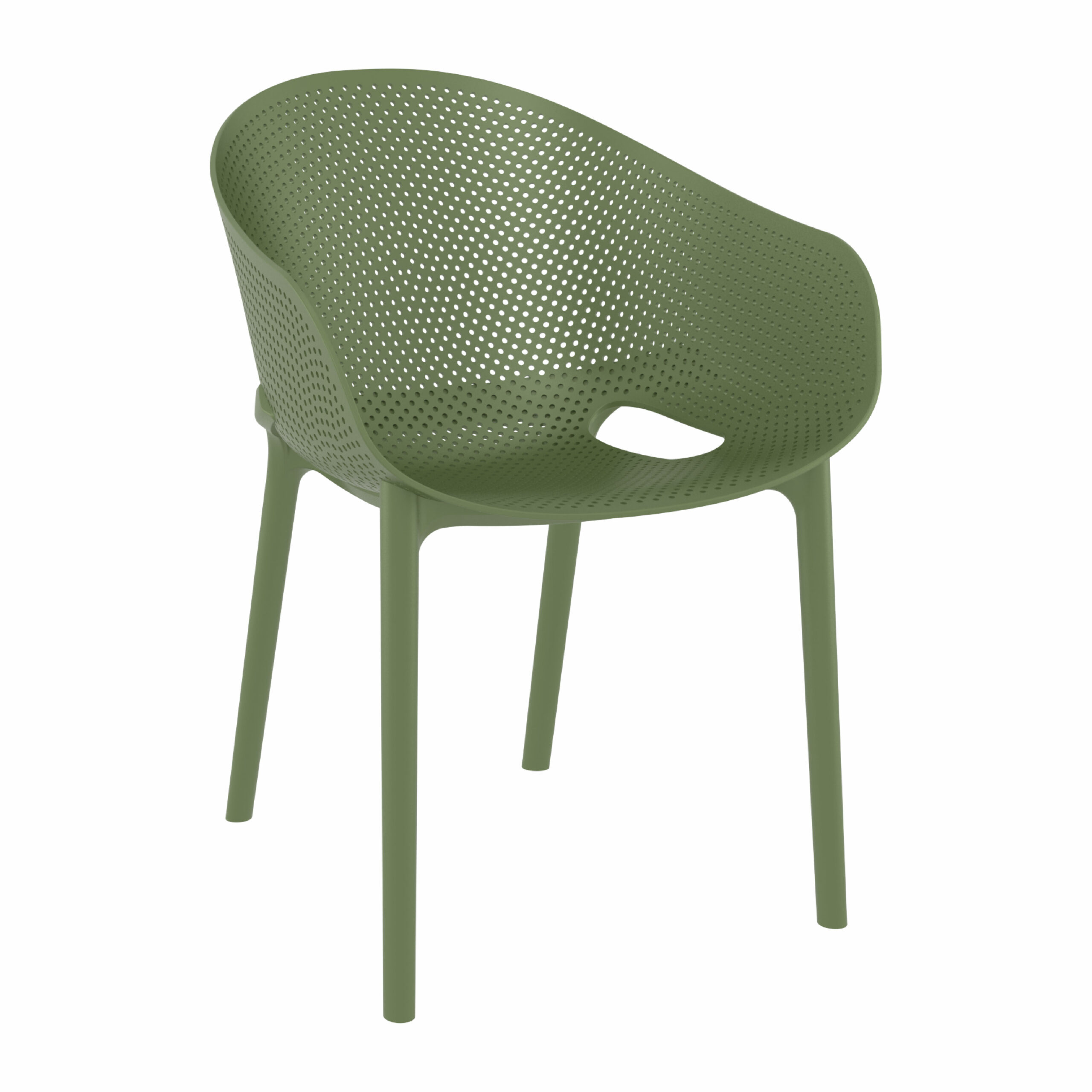 Sky Pro stacking armchair is produced with a single injection of polypropylene reinforced with glass fiber obtained by means of the latest generation of air moulding technology with neutral tones. For indoor and outdoor use.