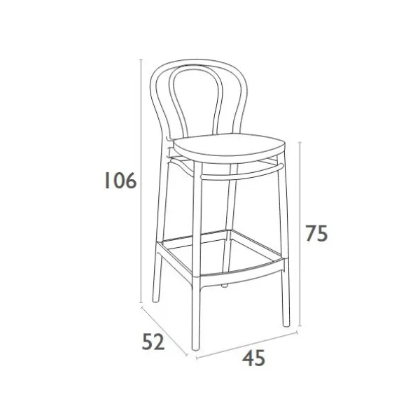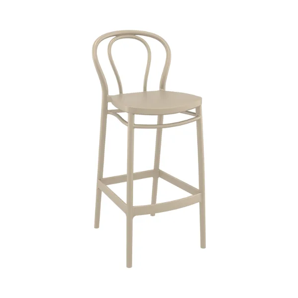 Victor bar stool h.75 cm is produced with a single injection of polypropylene reinforced with glass fiber obtained by means of the latest generation of air moulding technology with neutral tones. For indoor and outdoor use.