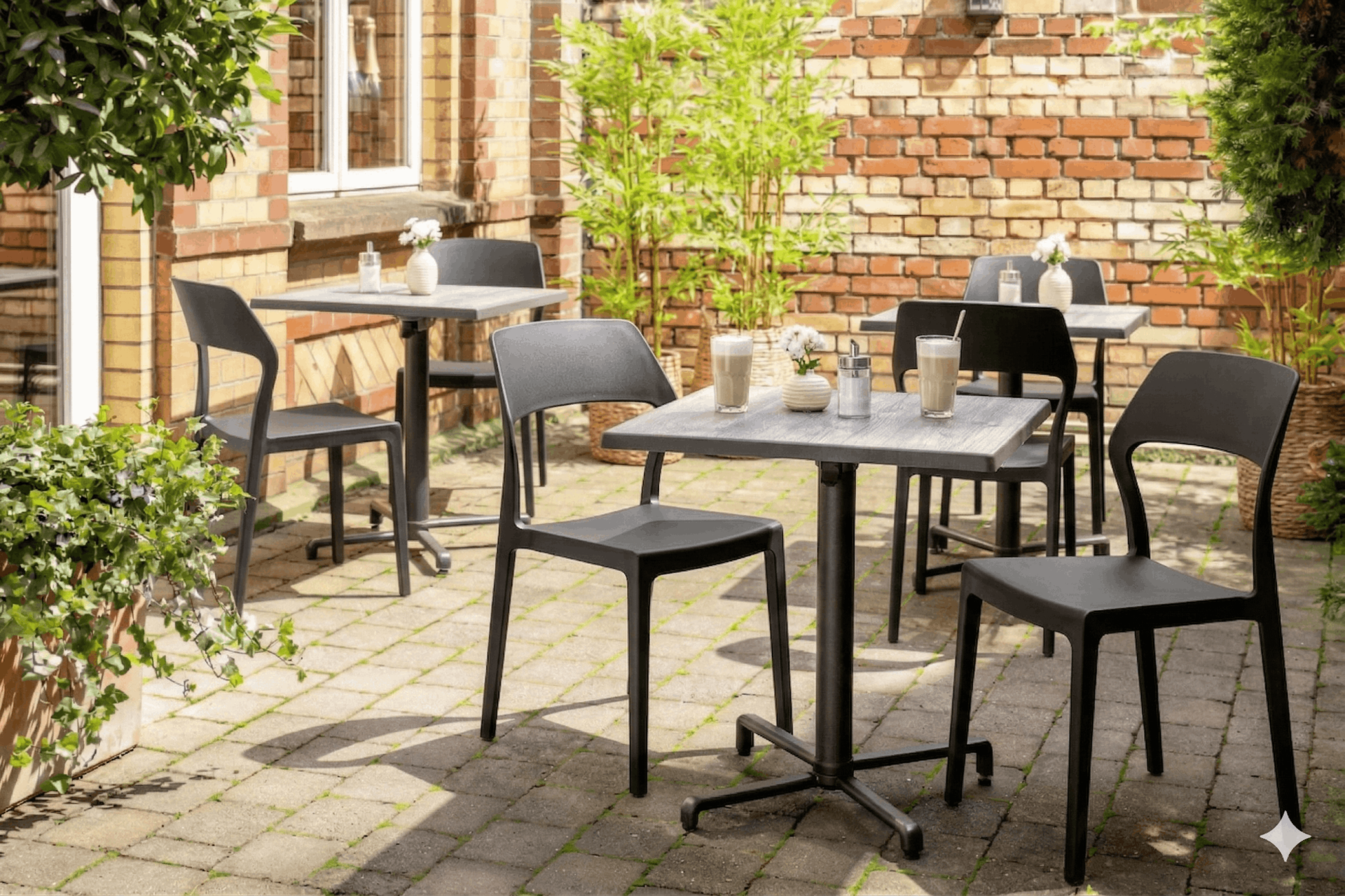 Built to withstand the elements, these tabletops offer high resistance against UV rays, harsh weather, and even cigarette burns. Engineered according to DIN EN 438 standards, they remain unbothered by heat or sun exposure.